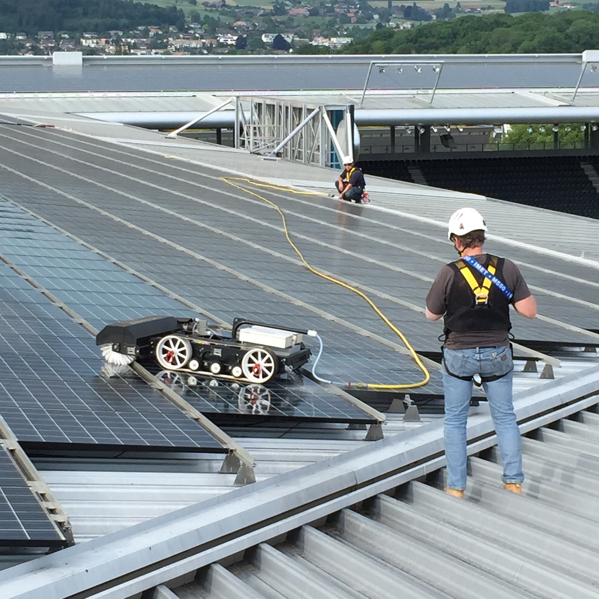 Die Maschine überzeugt vor allem mit Schnelligkeit (Flächenleistung zwischen 400 und 800 m² pro Stunde), einfachem Handling und einem optimalen Reinigungsergebnis. Die Steuerung des hyCLEANER® black SOLAR erfolgt über eine Funkfernbedienung, die es dem Bedienpersonal erlaubt, die Maschine präzise, und ganz ohne körperliche Anstrengung und Ermüdungserscheinungen, zu steuern. Das Betreten der Dachflächen oder gar der sensiblen Solarmodule ist somit nicht (länger) erforderlich – was den Reinigungseinsatz mit hyCLEANER® black SOLAR, im Vergleich zur manuellen Reinigung, nochmal sicherer macht!